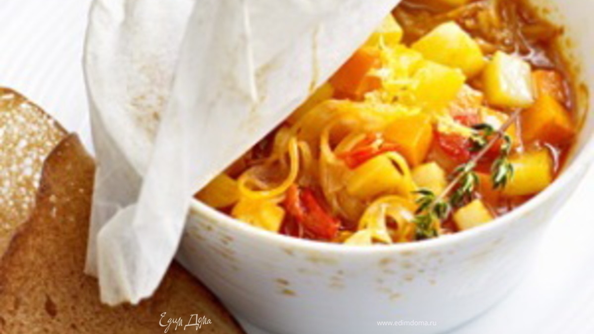 Гуляш из тушеного картофеля с хрустящим ржаным хлебом