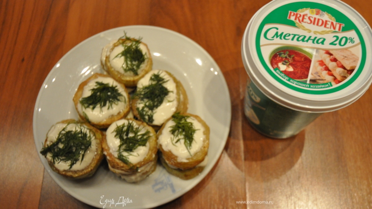 охладить кабачки, 2-3 зубчика чеснока раздавить, смешать со сметаной - Шаг 1съесть