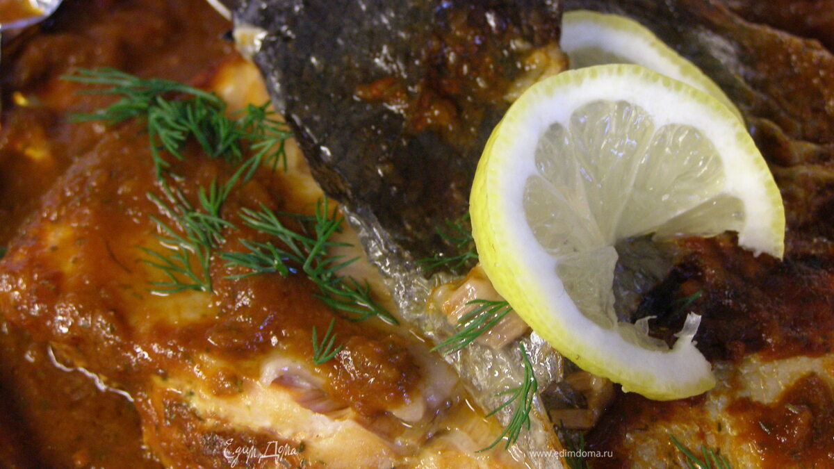 В процессе запекания часть воды выпариться и соус приобретет нужную густоту. Кожица легко будет отставать от спинки рыбы.