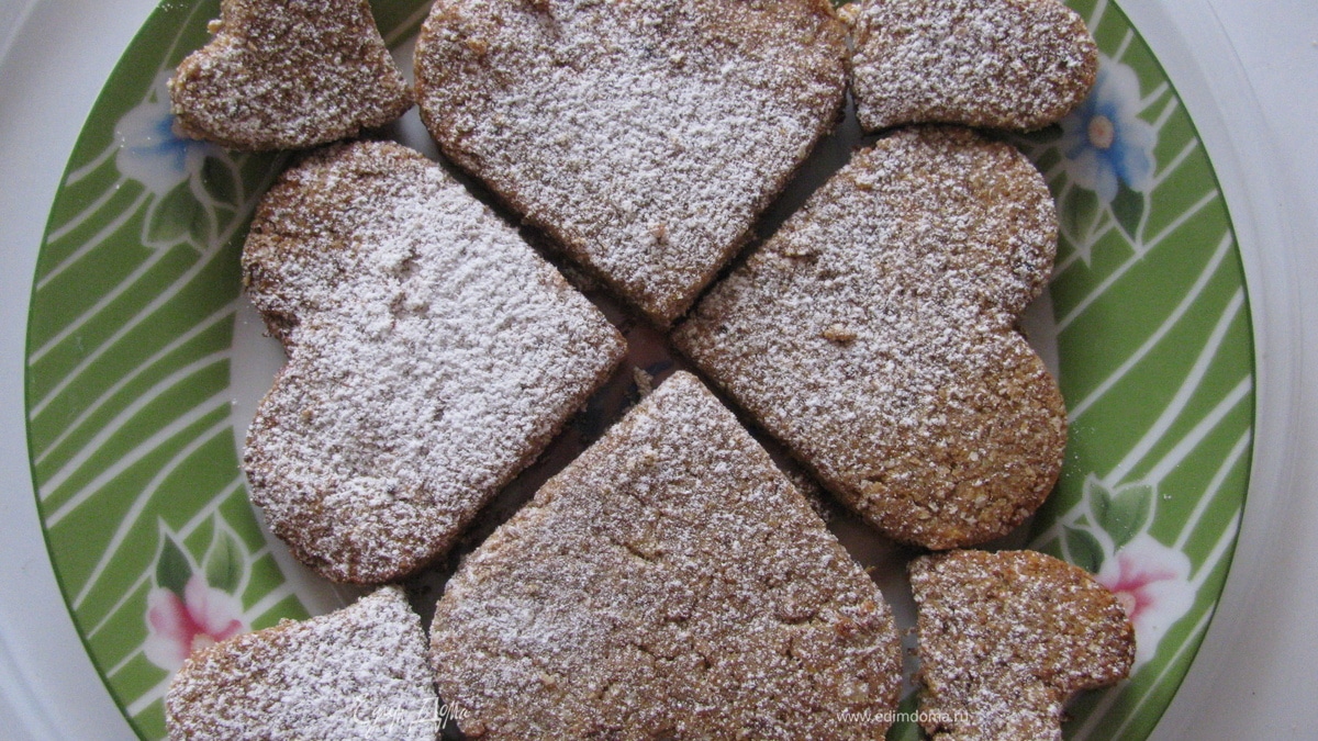Когда готовое печенье немного остынет, посыпаем его сахарной пудрой. Оно получается достаточно мягким.