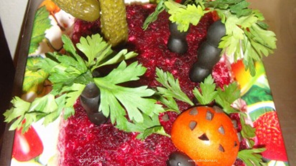 - ПодготовкаСвеклу, картофель и морковь отварить до готовности. Затем овощи остудить, почистить. Лук порезать мелко, если Вы используете горький лук, его надо залить кипятком и оставить на 10 минут. Затем воду слить, лук промыть в холодной воде. Филе селедки нарезать маленькими кусочками. Все овощи натереть на терке. Яблоки и грушу натереть на терке, ананасы нашинковать и смешать в однородную массу. Затем выкладываем все слоями, промазывая майонезом, только вместо привычных яблок выкладываем фруктовую смесь. Затем украшаем по тропически: Из маринованных огурчиков с помощью зубочисток делаем кактусы. Из оливок и зелени пальмы! ПРиятного аппетита!
