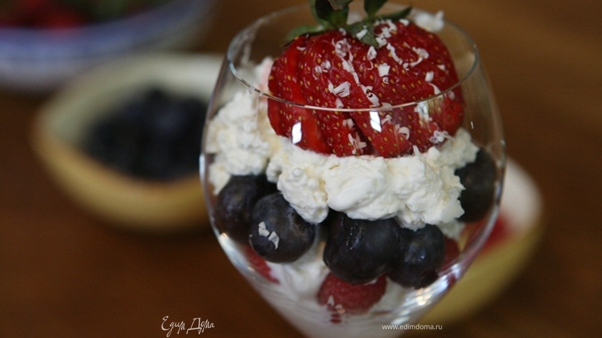 Если вы на диете, вместо сливок возьмите нежирный йогурт. Ягоды можно использовать любые.