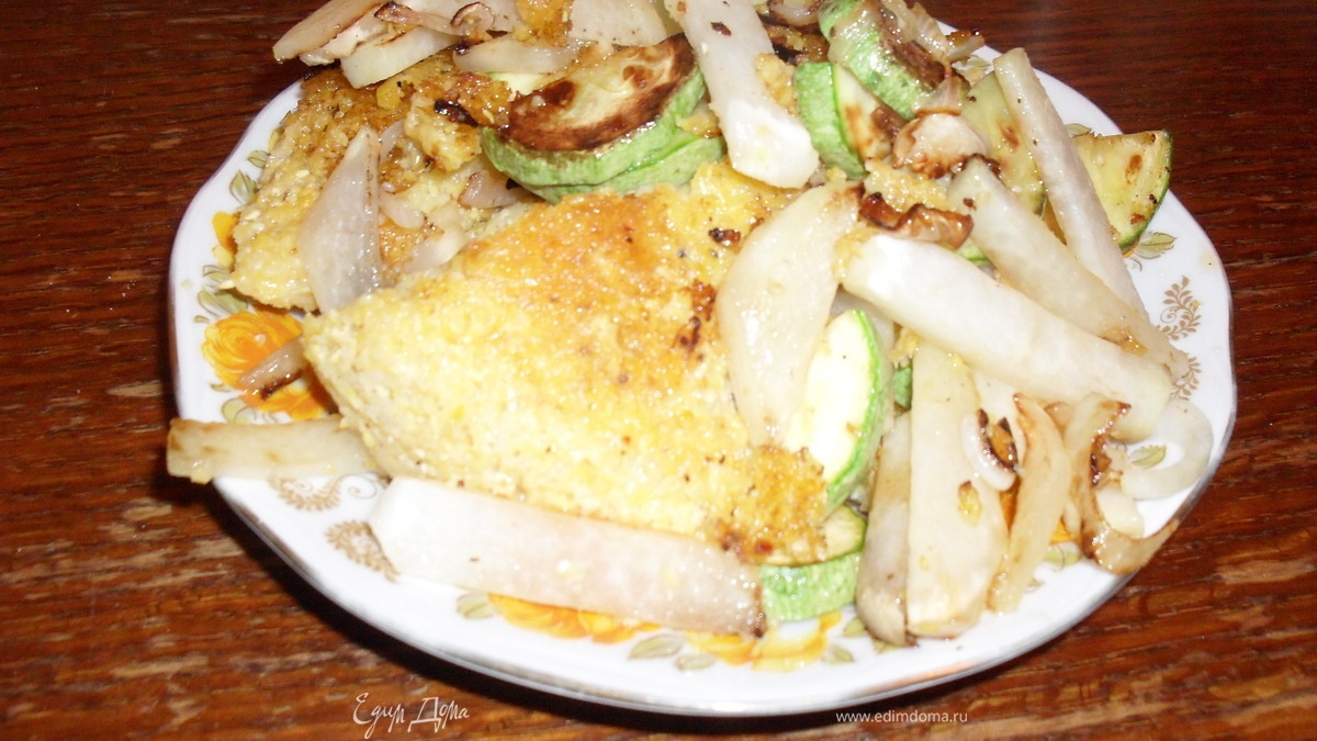 - Шаг 1Нарезать коляраби полосочками-чипсами,кабачки полукружочками.Обжарить на другой сковородке.Овощи и шницеля выкладывать на тарелки с бумажным полотенцем.Положить себе любимой и своим любимым на красивую тарелочку овощи,два шницеля и котлетку из сухариков.Отрезать кусочек вкусного хлеба и...