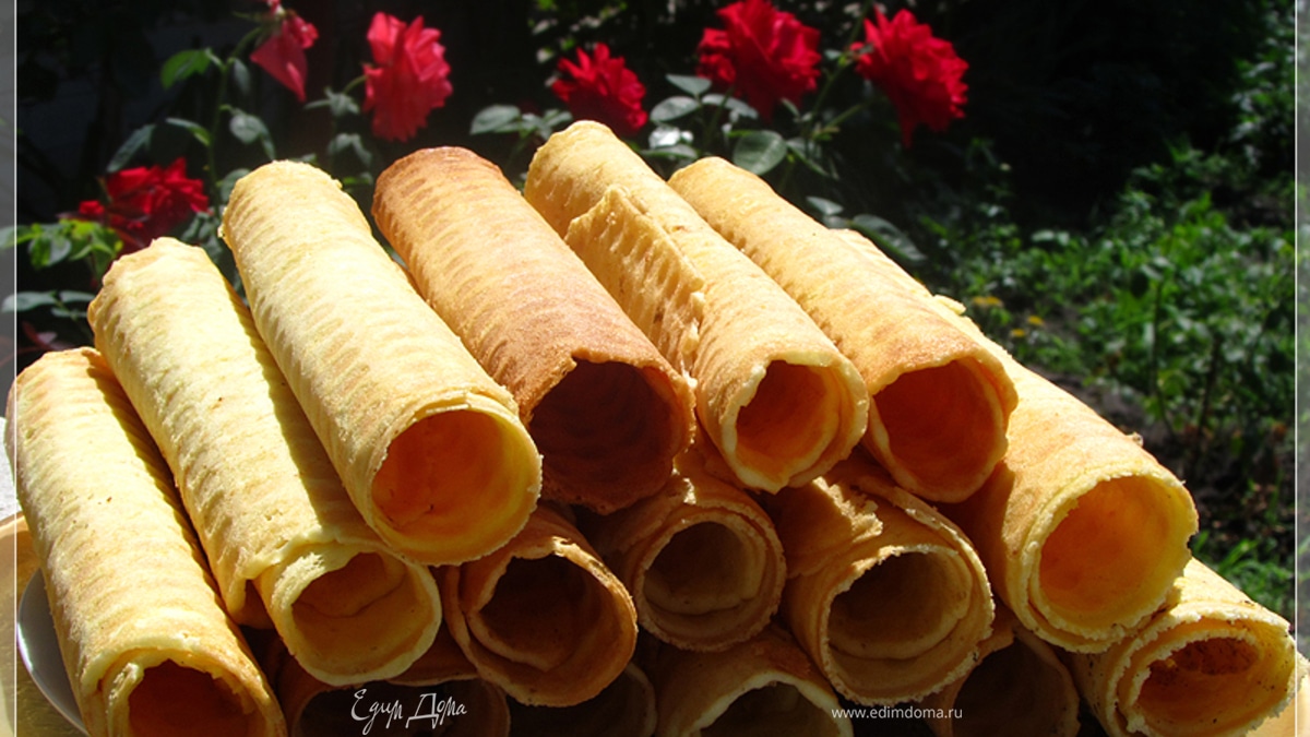 - Шаг 2С помощью вафельницы выпекаем трубочки. Ну и начинка конечно-же на ваш вкус, моя любимая это сгущенка=)