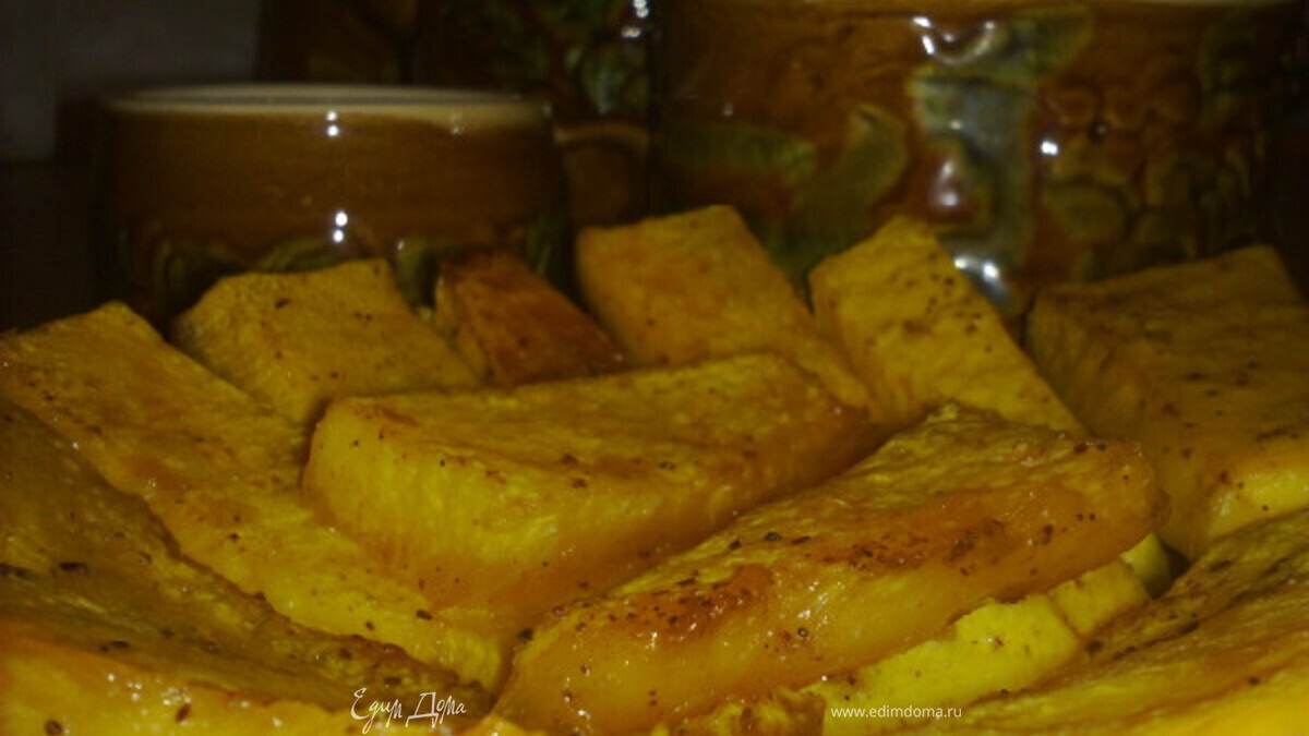 - Шаг 1тыкву почистить, освободить от семян, порезать произвольно. Уложить в жаропрочную форму посыпать специями и полить медом. Запекать в духовом шкафу или микроволновой печи до золотистой корочки.