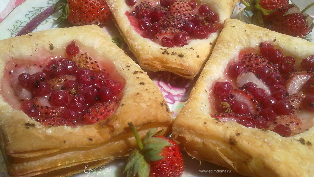 - Шаг 3Поставить в разогретую до 180–200°C духовку, выпекать слойки с клубникой и смородиной около 15 минут. Приятного всем аппетита!