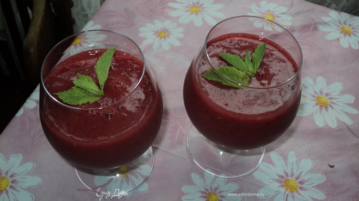 - Шаг 1Все ингредиенты измельчить и смешать с помощью блендера. Украсить мятой по желанию.