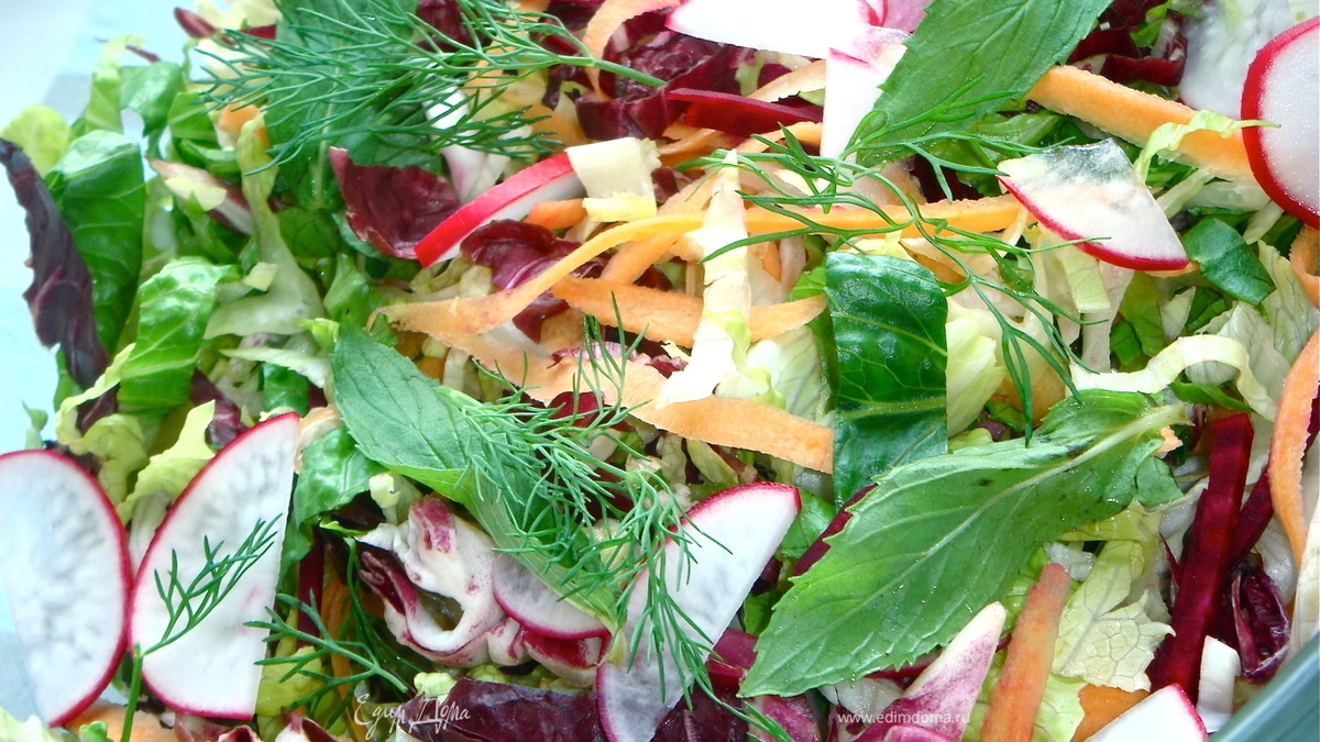 Салат лучше употреблять сразу после приготовления, чтобы овощи не потеряли хрусткость. Если нужно приготовить заранее, заправьте салат непосредственно перед подачей — так корнеплоды не размокнут. Для разнообразия можно заменить редиску на дайкон или добавить тонко нарезанный фенхель.Оценить538