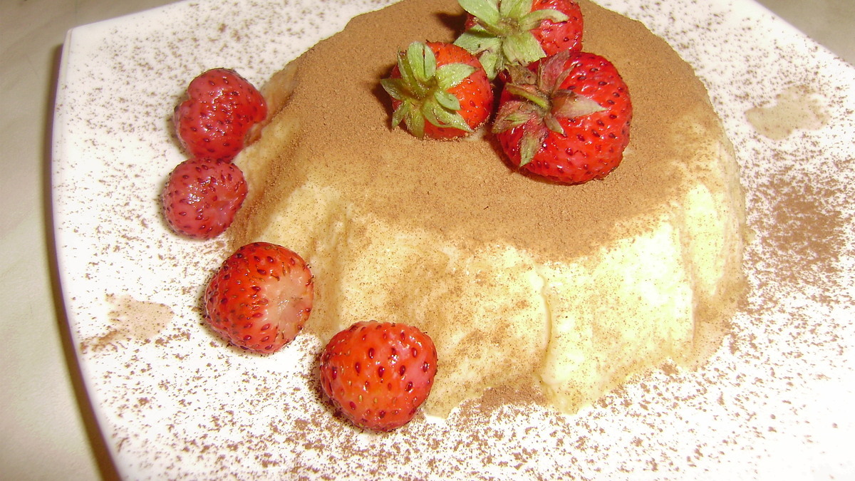 Разогреваем духовой шкаф до 180С и выпекаем флан около часа...Достаем из духовки...После флан необходимо остудить и на 2 часа поставить в холодильник....Затем каждую формочку переворачиваем на терелочку и украшаем по собственному желанию...Можно посыпать какао порошком и украсить клубничкой... - Шаг 5
