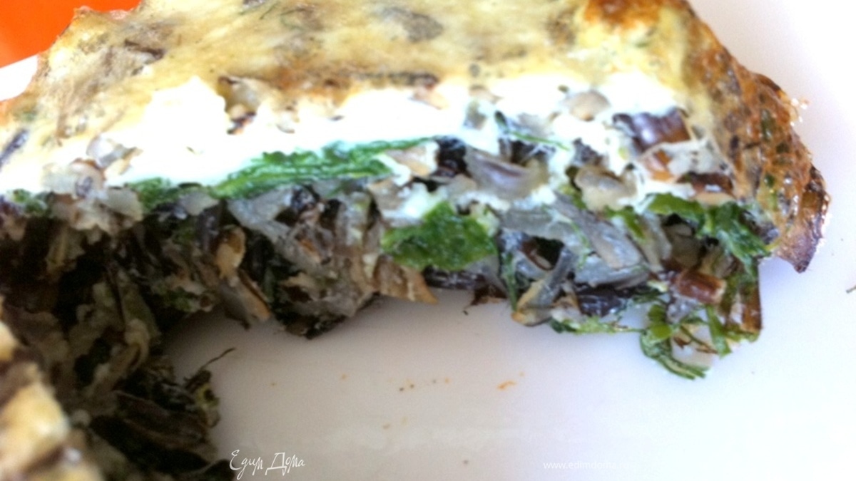Рис предварительно отварить.Взбить яйцо с молоком, добавить зелень, рис, соль по вкусу. все перемешать и выпекать 25—30 минут при 180 градусах.