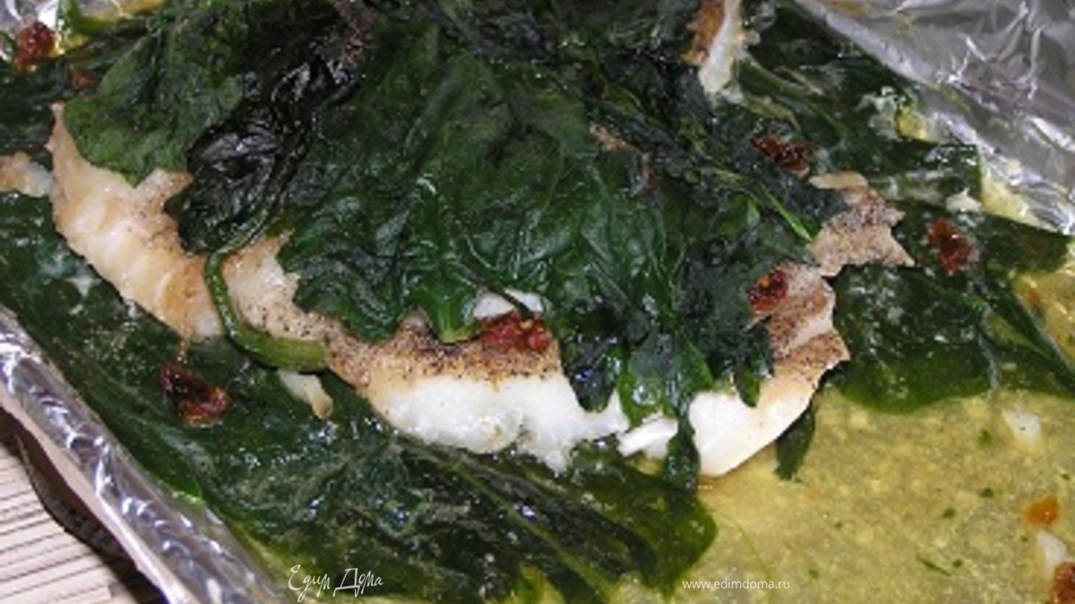 Филе посолить, поперчить, сбрызнуть маслом и уложить на шпинат. - Шаг 1