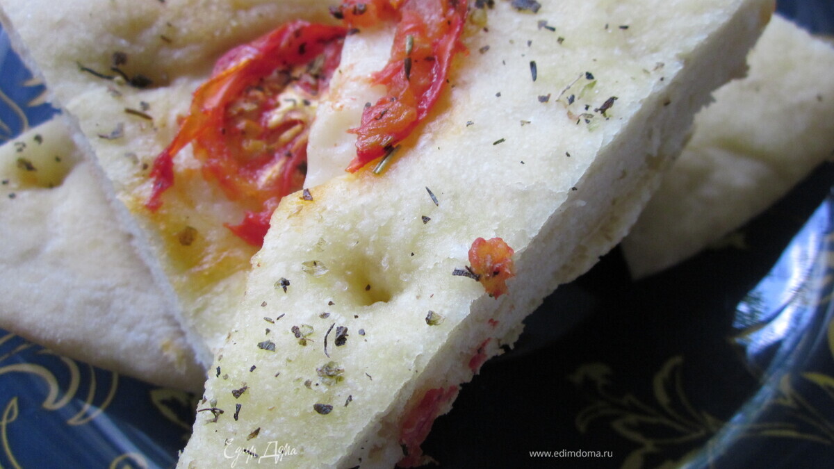 Как я уже писала, у меня сегодня обед в итальянском стиле и к своему супу "Минестроне" я испекла итальянский хлеб - фокачча с томатами.