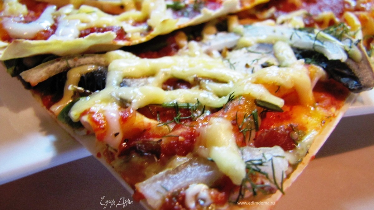 Идею подсмотрела на упаковке лаваша. Очень все получилось. Пицца действительно тончайшая. Ингредиенты могут быть разнообразные, на Ваш вкус. Это могут быть всевозможные залежи Вашего холодильника.