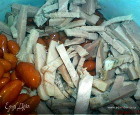буженину нарезать тонкими брусочками