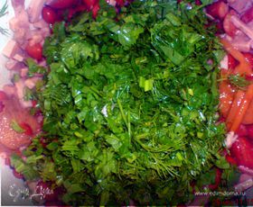 добавить нарезаные укроп и петрушку