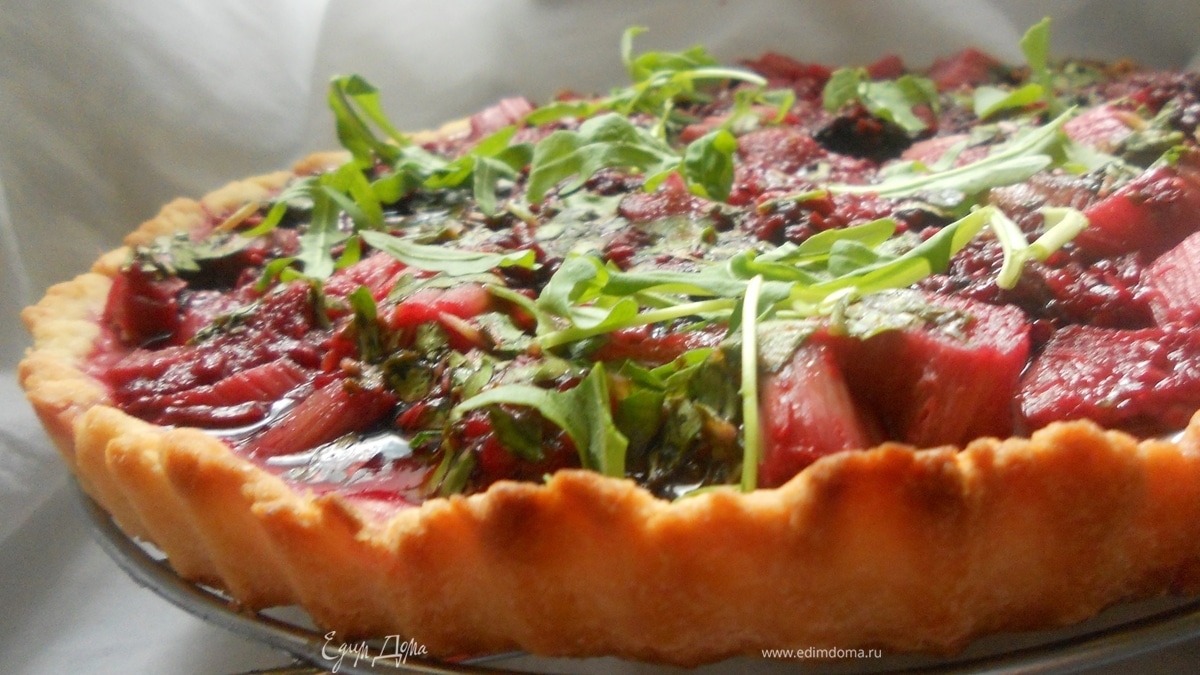 Закончить сезон ревеня решил-таки этим тартом - именно на него я "запал" некоторое время назад, полистав журнал "ХлебСоль". Это очень интересный эксперимент: сладкая ежевика, нахальный и дерзкий ревень и пряная рукола - это тот еще "любовный треугольник"!:) Предупреждаю сразу: горчинка руколы не всем может понравится в тарте. Поэтому Вы можете заменить ее на свежую мяту (главный дегустатор, например, сказал, что от руколы можно было и избавиться). В общем, решайте сами, главное - решайтесь!:)))