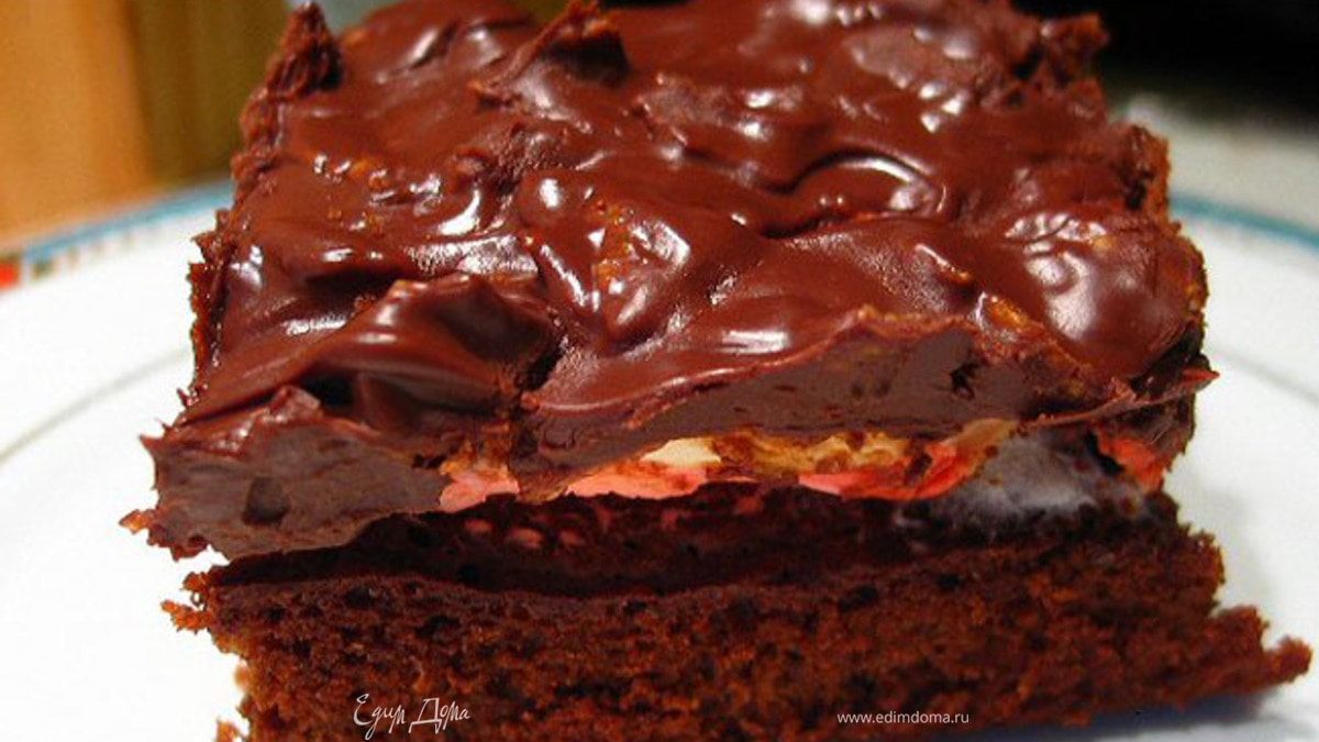 - Шаг 1Яйца взбить с сахаром и ванильным экстрактом. Небольшими порциями ввести шоколадную массу, постоянно помешивая. Постепенно добавить мучную смесь. Выложить тесто в смазанную маслом форму (20Х30) и выпекать около 25 мин.