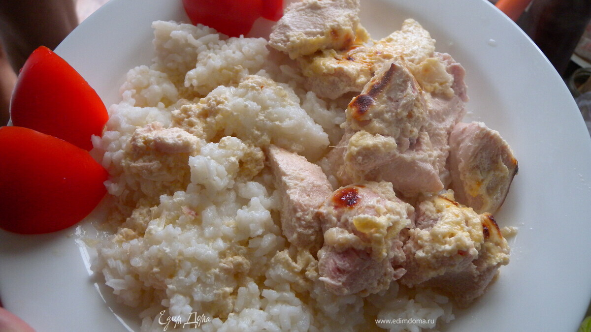 Мы отведали такую курочку просто с отварным рисом и помидорками :-))) Приятного аппетита!!!