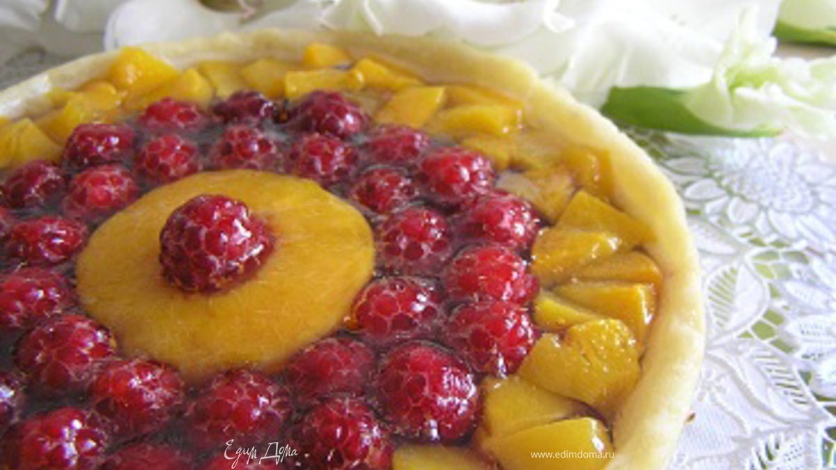 В середину положить половинку персика, на него малинку. - Шаг 1