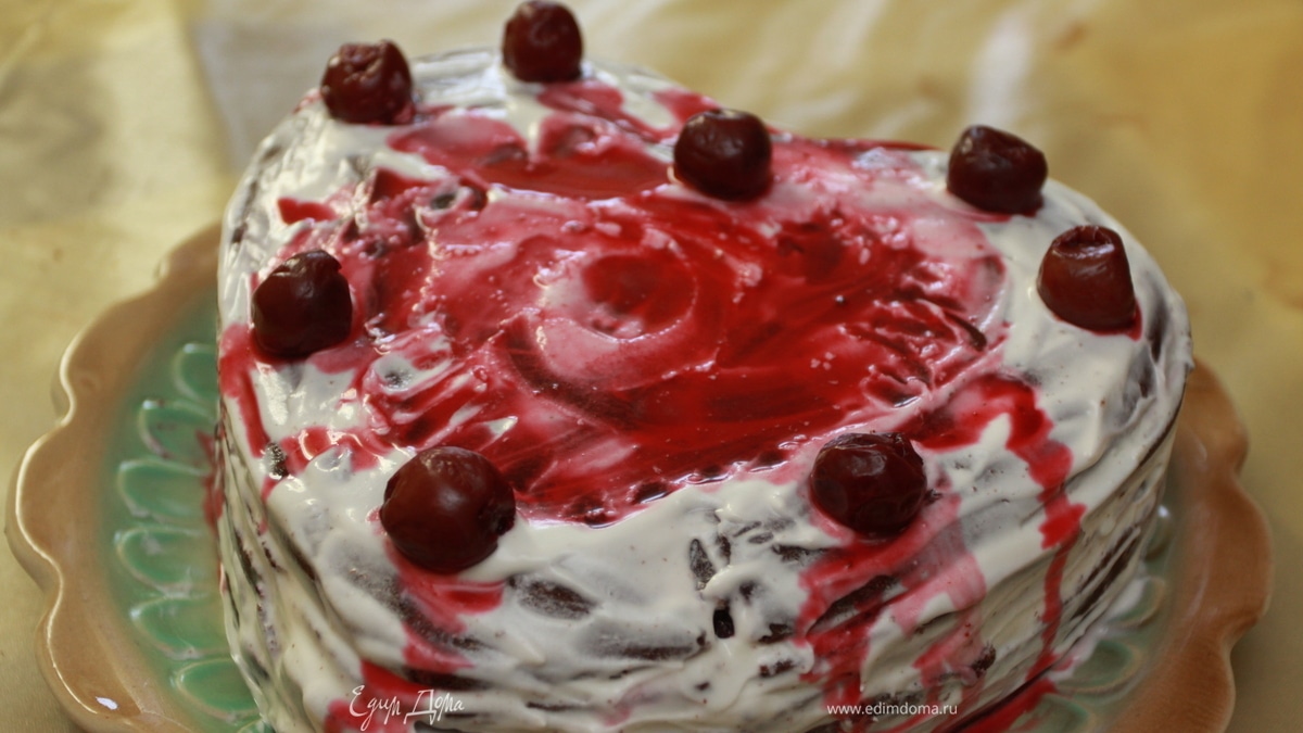 Остывший бисквит разрезать на коржи Пропитать слои сиропом Прослоить Взбитыми сливками Украсить по желанию - Шаг 1