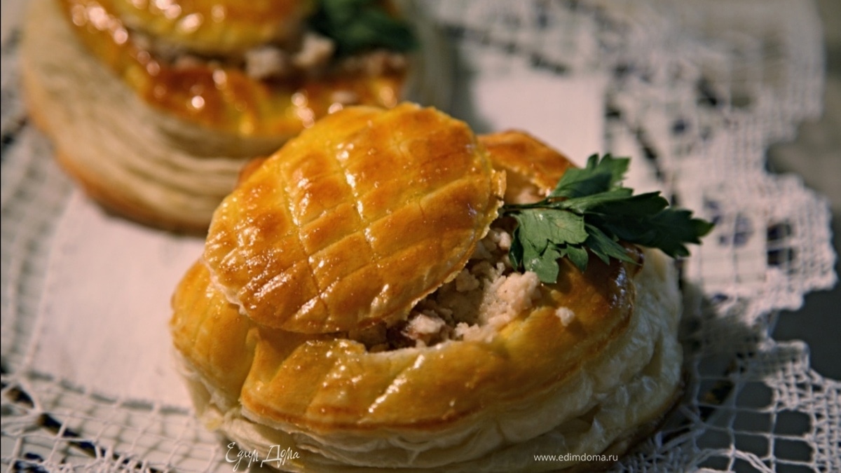 Слоёные тарталетки с курицей