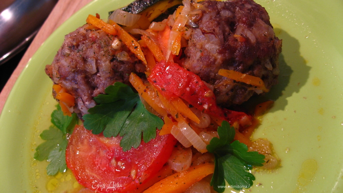 Биточки запеченные с овощами