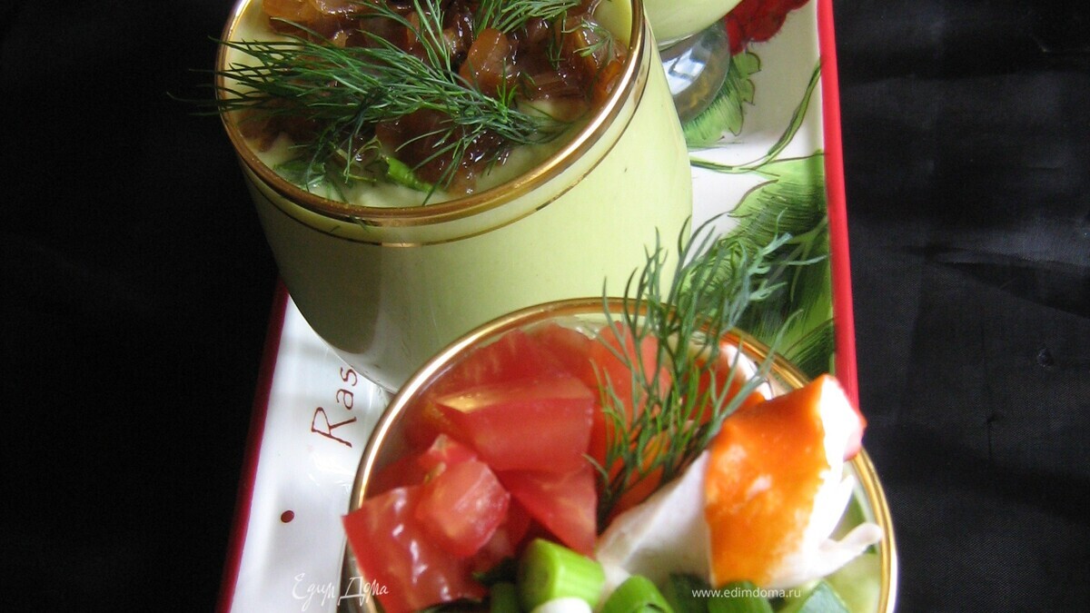 Охлаждённый суп-пюре разлить по бокалам или тарелкам и каждому положить то,что он любит.Приятного аппетита!Я сделала так: в первый бокал с супом положила перец,зелень,красную икру и огурец,во второй: помидоры,зелень,крабовое мясо,перец,на а в третий карамелизированный лук и зелень.В общем можно фантазировать.Суп нужно обязательно охладить.если хотите увеличить порции,то нужно будет ещё пару авокадо.Вкусно,легко и по летнему свежо! Приятного аппетита!