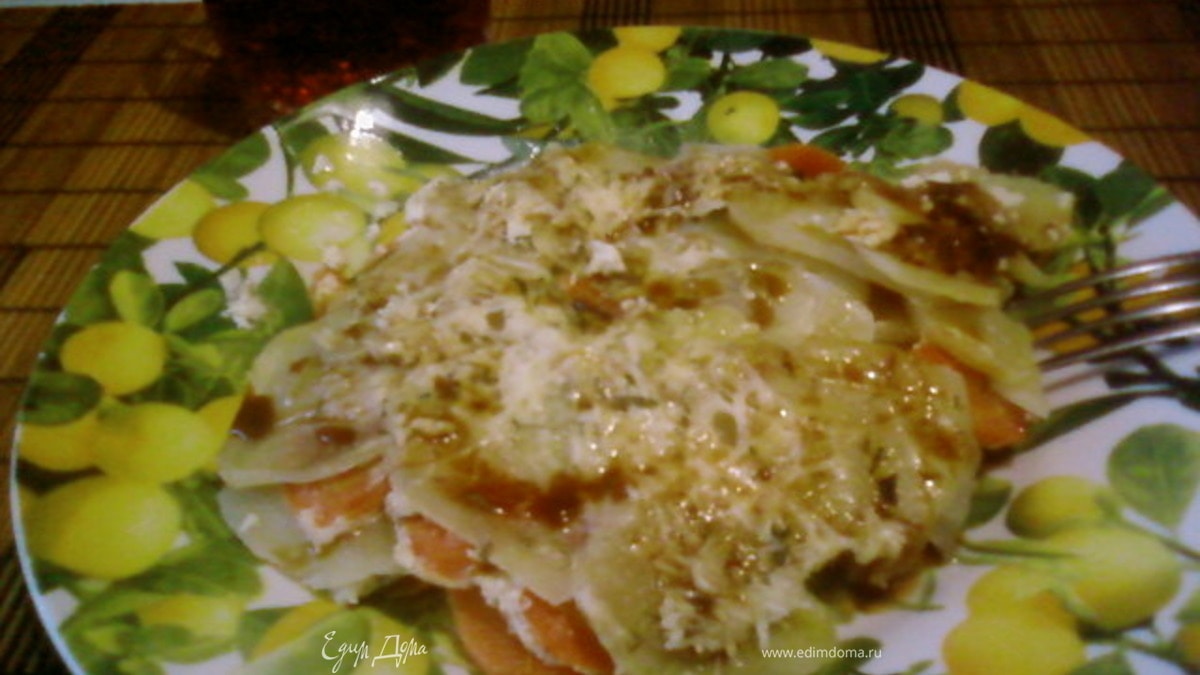Мне нравится!Очень вкусная картошечка,запеченная с грибами и морковочкой,с сыром.Аромат аж здесь чувствуется.***** за такой букет.Умница,Люба! Записала в МКК.)))