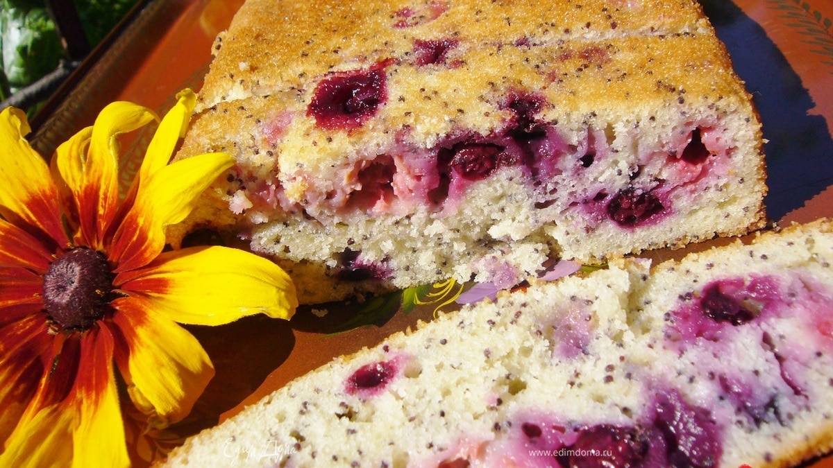 Кекс маковый с малиной и смородиной