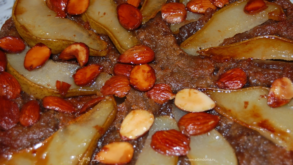 На форму выложила дольки груши и орехи, присыпала сахаром и отправила в духовку минут на 20. Затем рязмяла тесто, уложила поверх груш и снова в духовку минут на 20-30 при 180-200С.