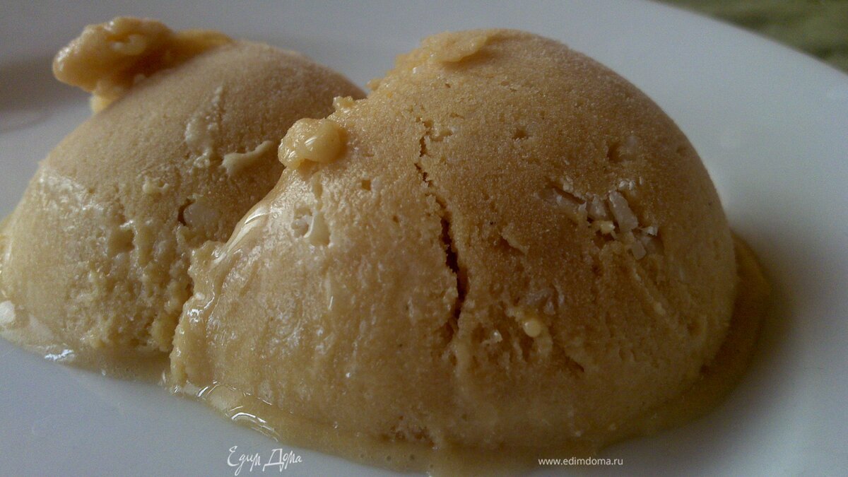 Добавить карамель в сливки, перемешать, влить в контейнер с крышкой и поставить в морозильник на 6-8 часов. Перемешивать мороженое каждый час деревянной ложкой. - Шаг 8