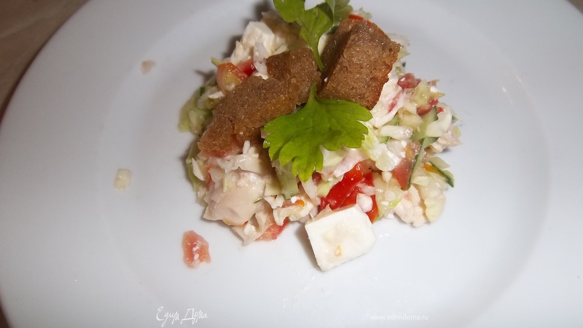 Очень прост в приготовлении.Похож на Греческий и Цезарь
