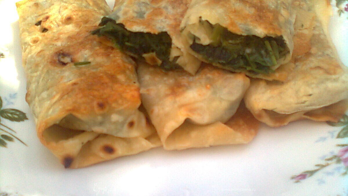 в начале зелень моем,сушим и режем,затем берём лаваш, смазываем его майонезом,выкладываем на неё горсть зелени,солим,немного добавляем сыра (нужно знать на сколько соленый сыр (я соль добавляла мало), потом его заворачиваем,мажем сверху майонезом и отправляем в духовку на 10 минут (пока не подрумяниться). - Шаг 1Обед оказался и вкусный и сытный,со стаканом холодного айрана. Айран, это в мацони добавляем холодную воду и щепотку соли (например), 2 столовой ложки мацони,1 стакан воды) Приятного всем аппетита!!!!!!