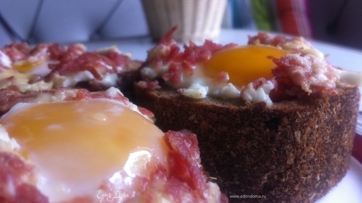 - Шаг 2Отдельно обжариваем яйца, чтобы желток оставался цельным.