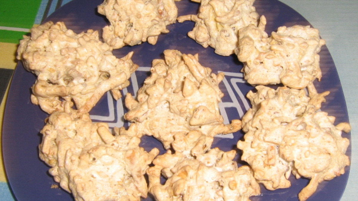 Разогреть духовку до 160-180 градусов. Противень застелить пергаментной бумагой. Полученную массу десертной ложкой выложить на противень и подрумянить в духовке.