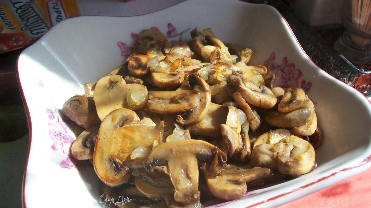 Предлагаю простой рецепт вкусной закуски или гарнира. Я шампиньоны отвариваю, а потом жарю на сковороде вместе с луком.