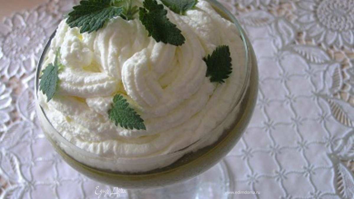 Готовый десерт украсить взбитыми сливками и листиками мяты, на этот раз я использовала мелиссу. - Шаг 1