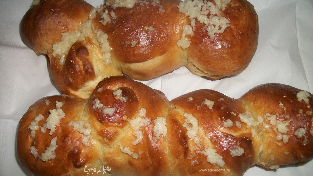 Когда пампушки готовы смазываю сверху чесночным соусом. Для этого:несколько зубков чеснока растираю с солью, добавляю оливковое масло и 2-3 ст.лож. кипяченной холодной воды. Поливаю пампушки сверху и еще минут на пять отправляю в духовку.