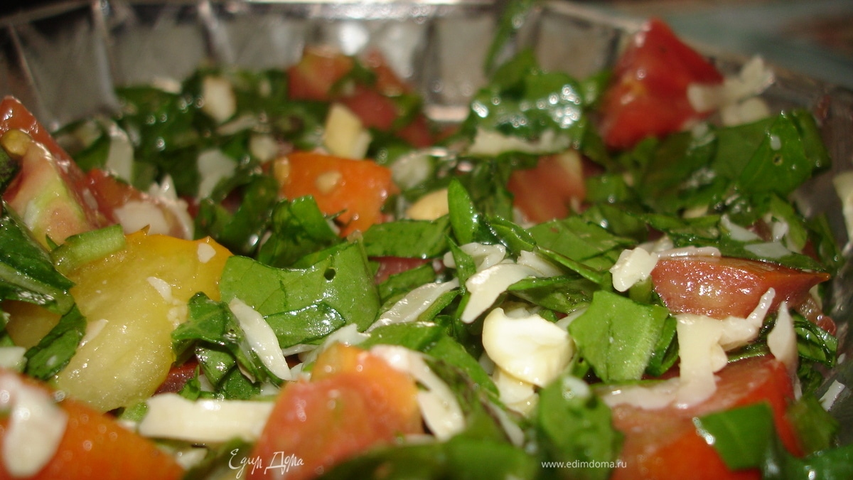- ПодготовкаНарезать кубиками помидоры. Нарезать руколу.