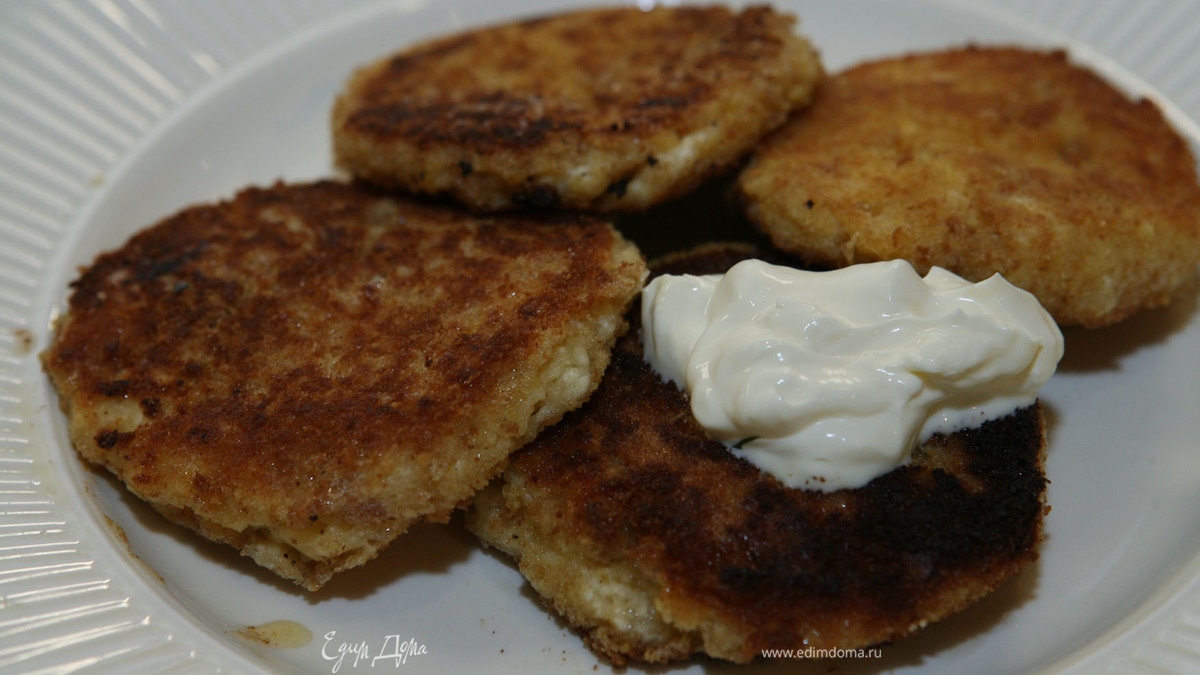 Подавать творожники со сметаной.