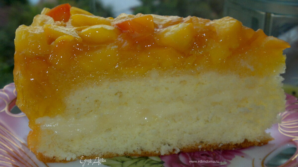 Ложим корж в разьемную форму, смазываем нашим кремом, накрываем коржом, сверху заливаем нашей фруктовой массой и равномерно распределяем. Убираем в холодильник часов на 4-5. - Шаг 1