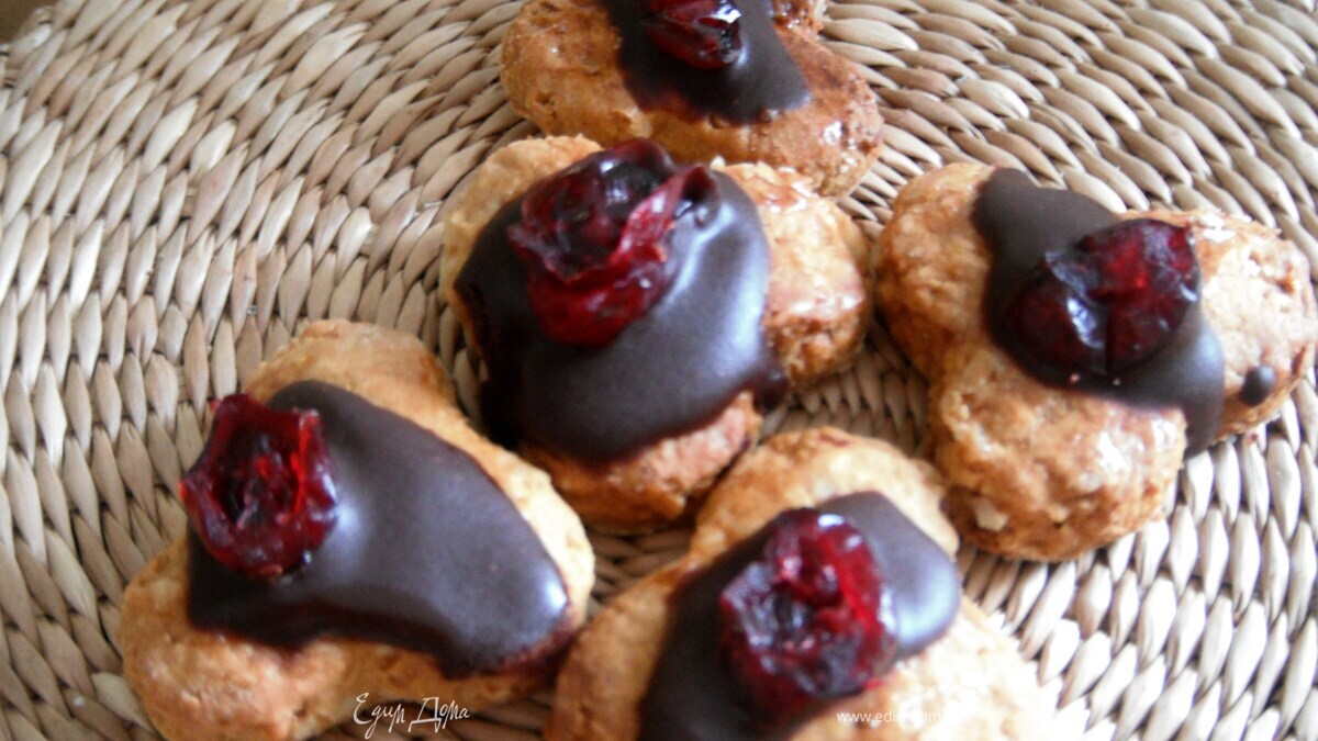 - Шаг 1Растопить шоколад с оставшимся маслом, и когда остынет, полить сверху и украсить ягодками вяленой клюквы.