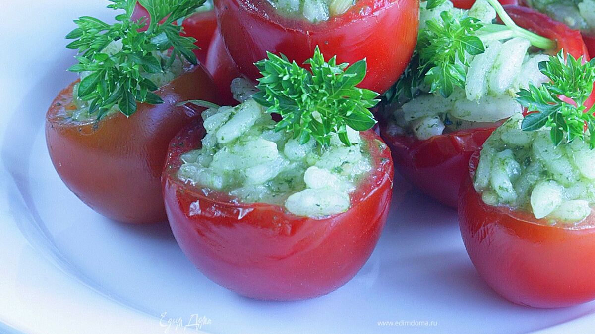 Помидорки черри, фаршированные ризотто