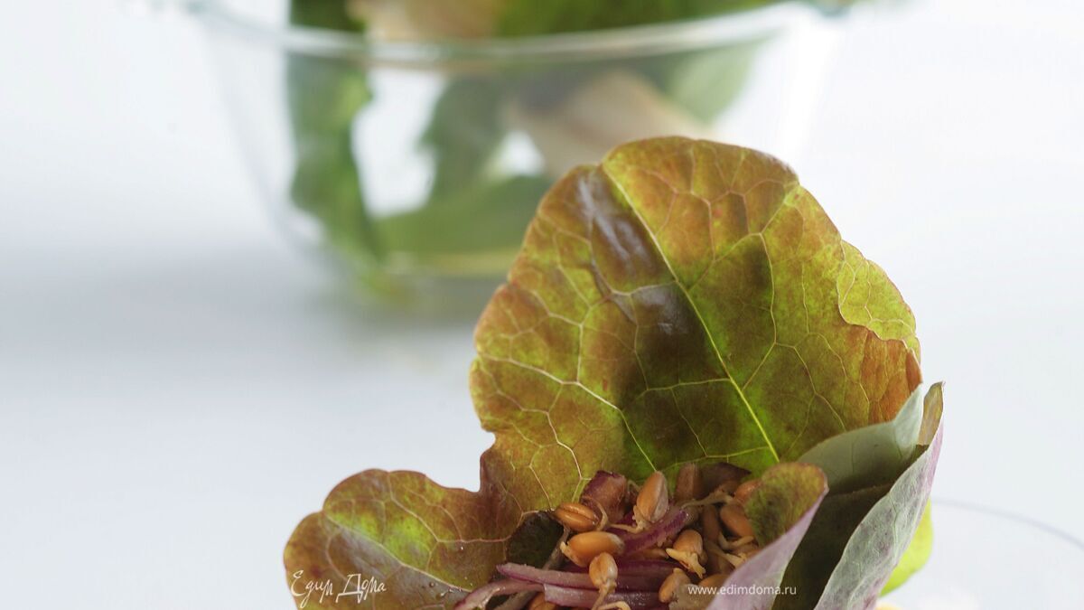 Скрутки из салата с зернами пшеницы