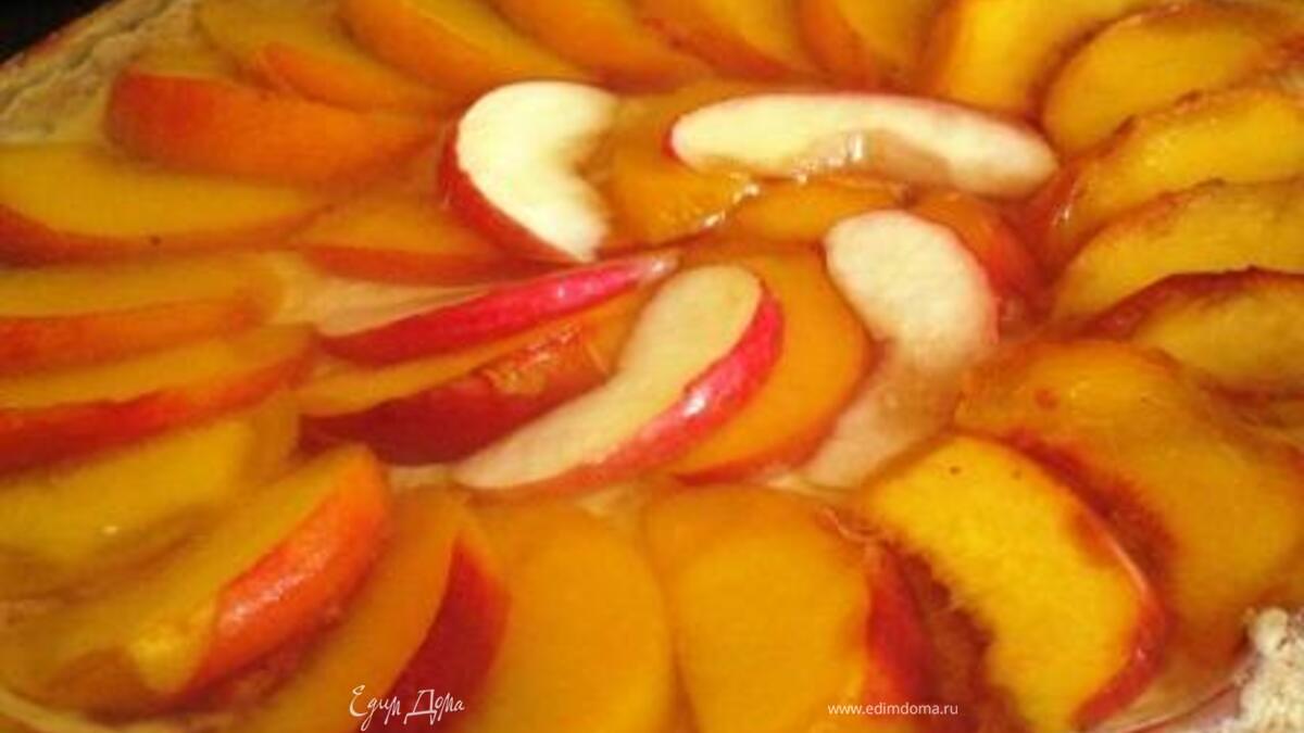 ... летом хочется фруктов и праздника. Продолжаем! Оставляем пирог остыть. Нарезаем два персика ломтиками, красивенько выкладываем, заливаем приготовленным раствором для желе и в холодильник. Приятного аппетита!