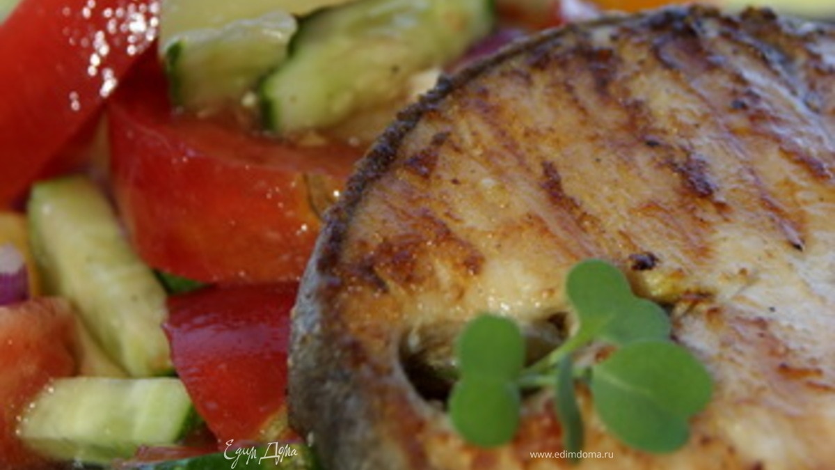 - Шаг 1Размораживаем стейки, солим, перчим, добавляем итальянские травы, чуть чуть сбрызгиваем оливковым маслом, выдавливаем лимонный сок и оставляем мариноваться 30-35 минут. На хорошо разогретую сковородку-гриль выкладываем рыбку, и обжариваем ее по 5 минут с каждой стороны. Подаем с летним салатом из свежих овощей, посыпав молодой руколой. Ланч готов :)) Приятного аппетита!