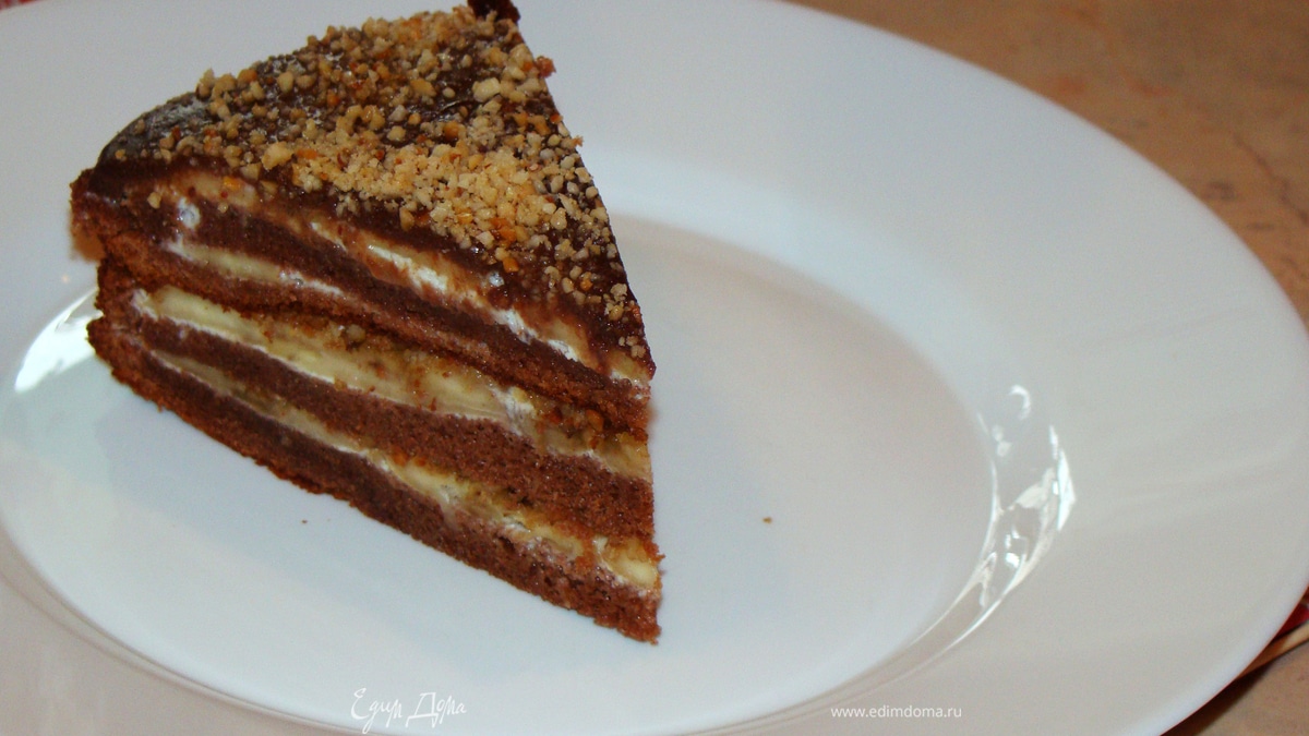 - Шаг 7корж>бананы>орехи>крем по этой схеме соберите торт