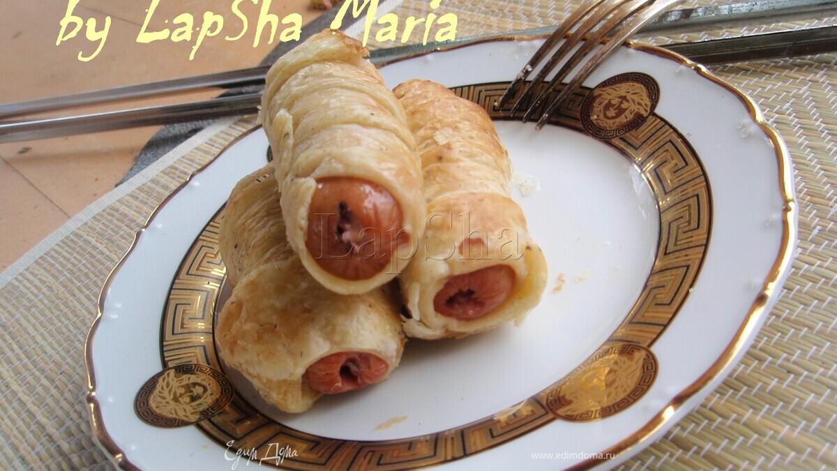Полосками теста обмотать сосиски обязательно с захлестом. Сосиска увеличивается и немного растягивает тесто. - Шаг 3