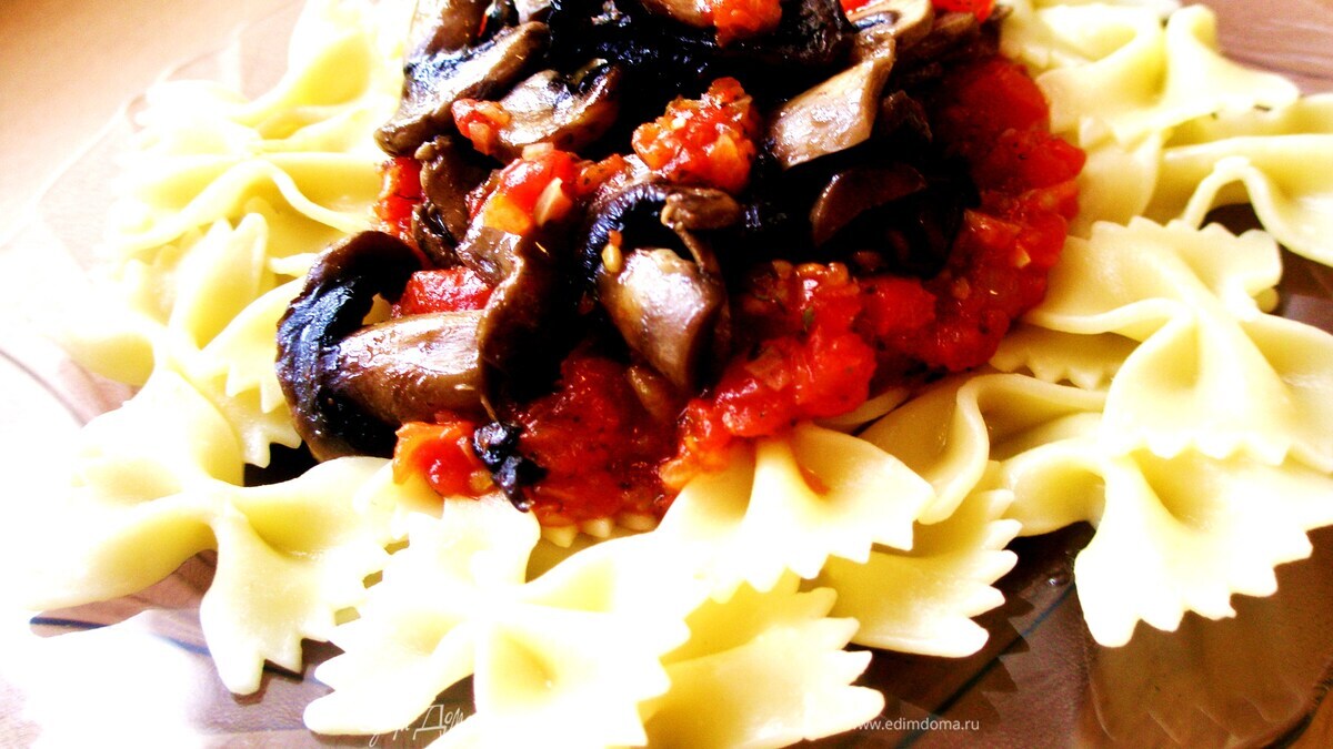 Паста с томатами и шампиньонами