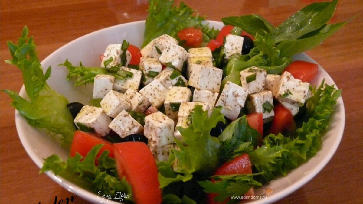 Сыр фета пропитавшись в оливковом масле с пряностями приобретает новый вкус. Главное отличие этого салата в предварительной обработке сыра фета.